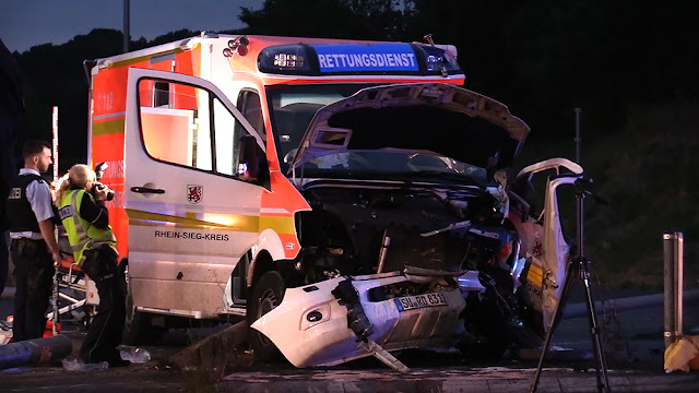 Gegen 23:15 Uhr am Donnerstagabend (04.07.) befuhr ein Rettungswagen im Rahmen eines Einsatzes mit Sonderrechten die B 507 in Lohmar (Rhein-Sieg-Kreis). Im Kreuzungsbereich des Donrather Dreiecks kollidierte der RTW mit einem Pkw (Mietwagen), welcher von der A 3 kommend in Richtung Lohmar-Donrath fahren wollte.
