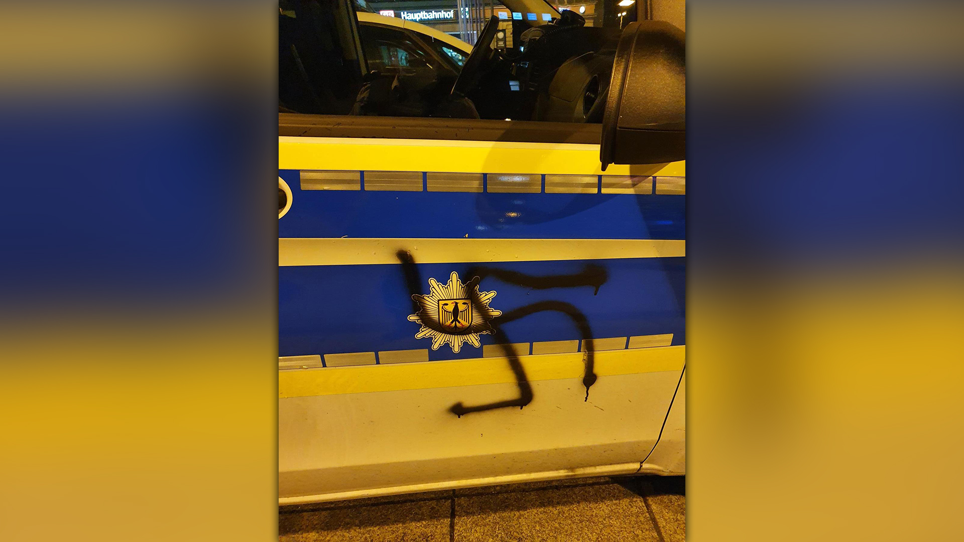 Gegen 21:30 Uhr informierten Zeugen die Bundespolizei am Hagener Hauptbahnhof darüber, dass eine unbekannte Person ein Hakenkreuz auf das vor der Wache geparkte Einsatzfahrzeug gesprüht hatte.